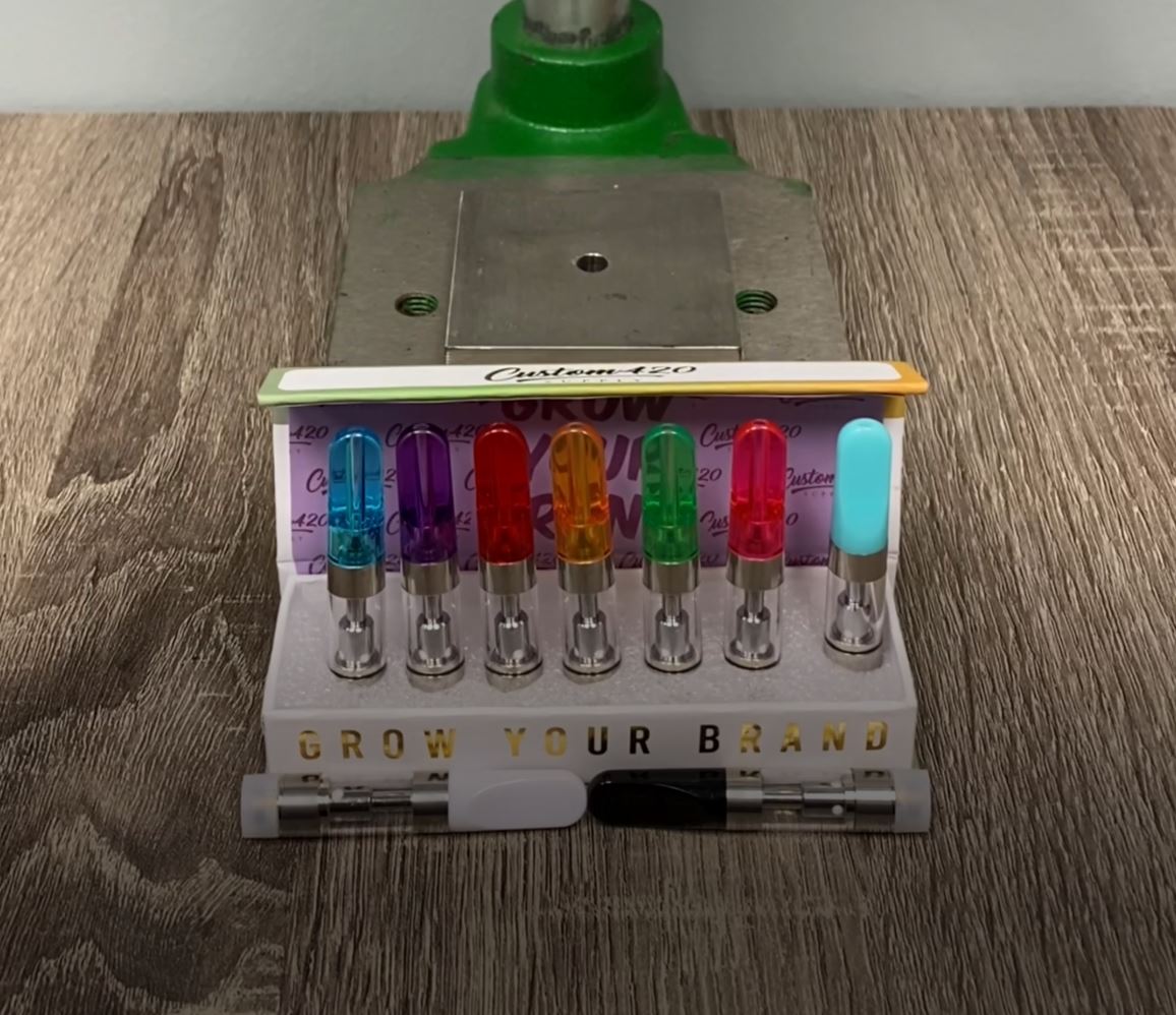 Press tip carts have grown to be a popular method of capping vape carts in large scale vape cartridge production. They help save time and ensure quality control. Whether distillate vape carts or CBD vape carts, these will sure to keep your oils locked in with it lock top feature after being pressed on. Enterprise solutions are available for wholesale vape carts. Lots of colored tips to choose from and help you dial in your branding!