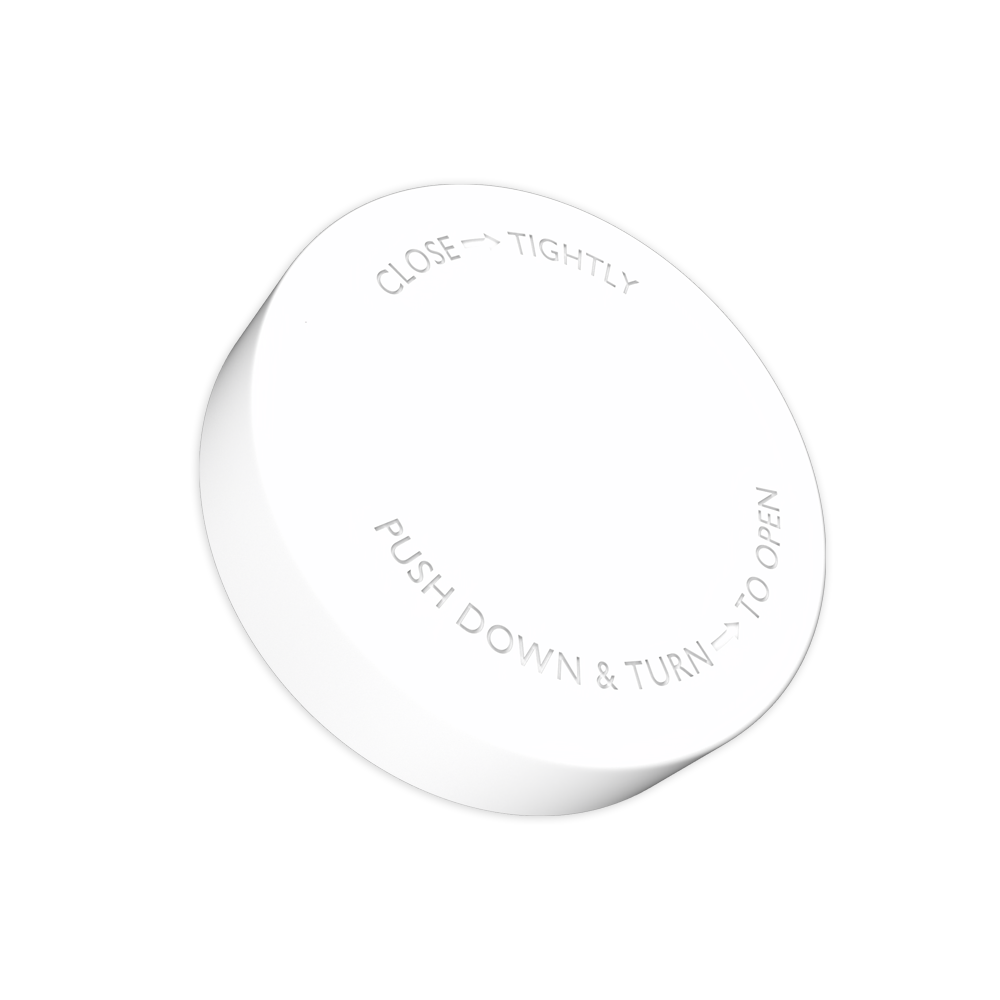 White lids specifically for 18oz V2 Glass Jar (48 Qty). This newer version of our 18oz glass jar is paired with our Child Resistant White Lid, which is a great compliant solution to use glass. These caps are different than our original grooved caps as they are flush to the glass base and a smooth top with easy to read “Push Down & Turn” engraving to direct how to open and close the lid.