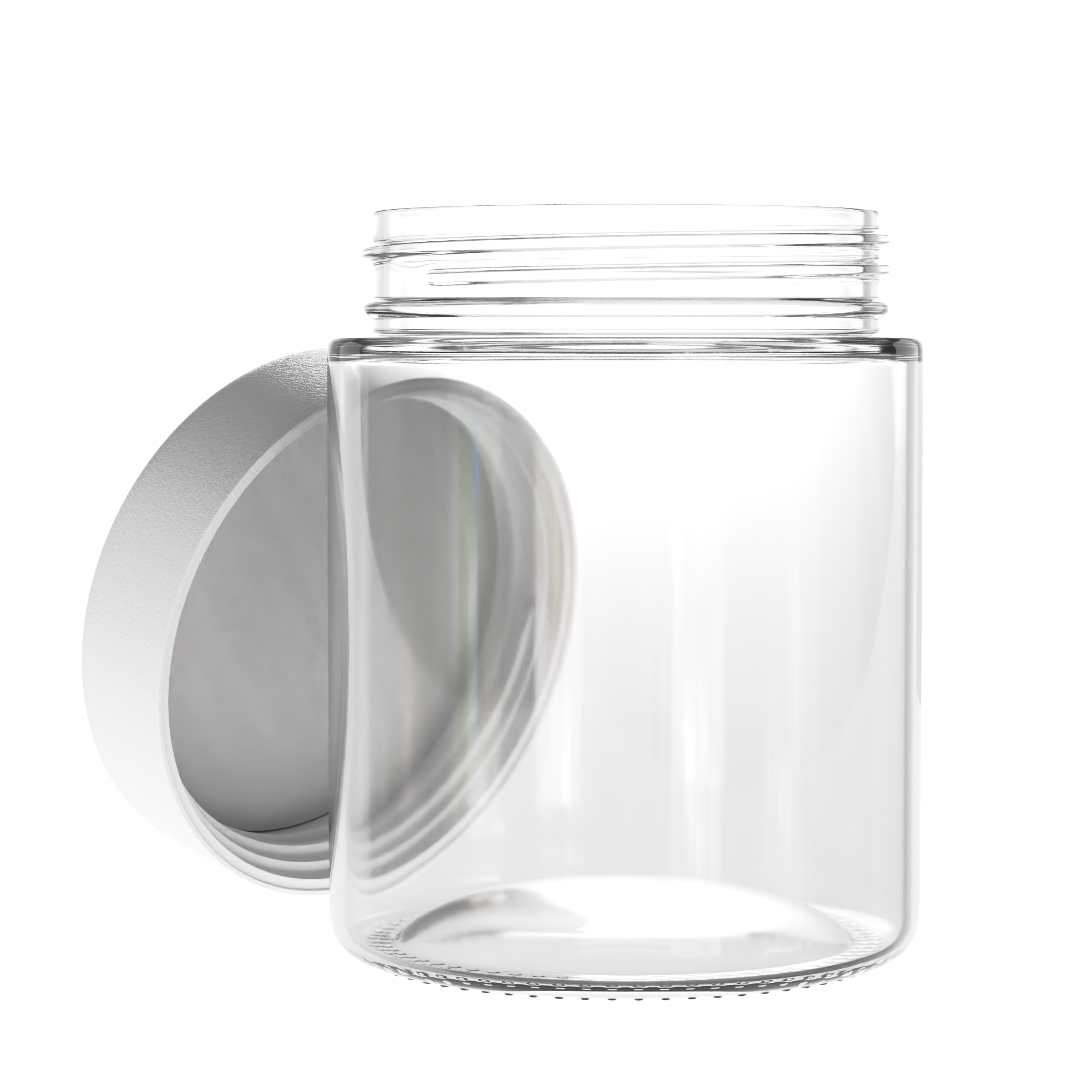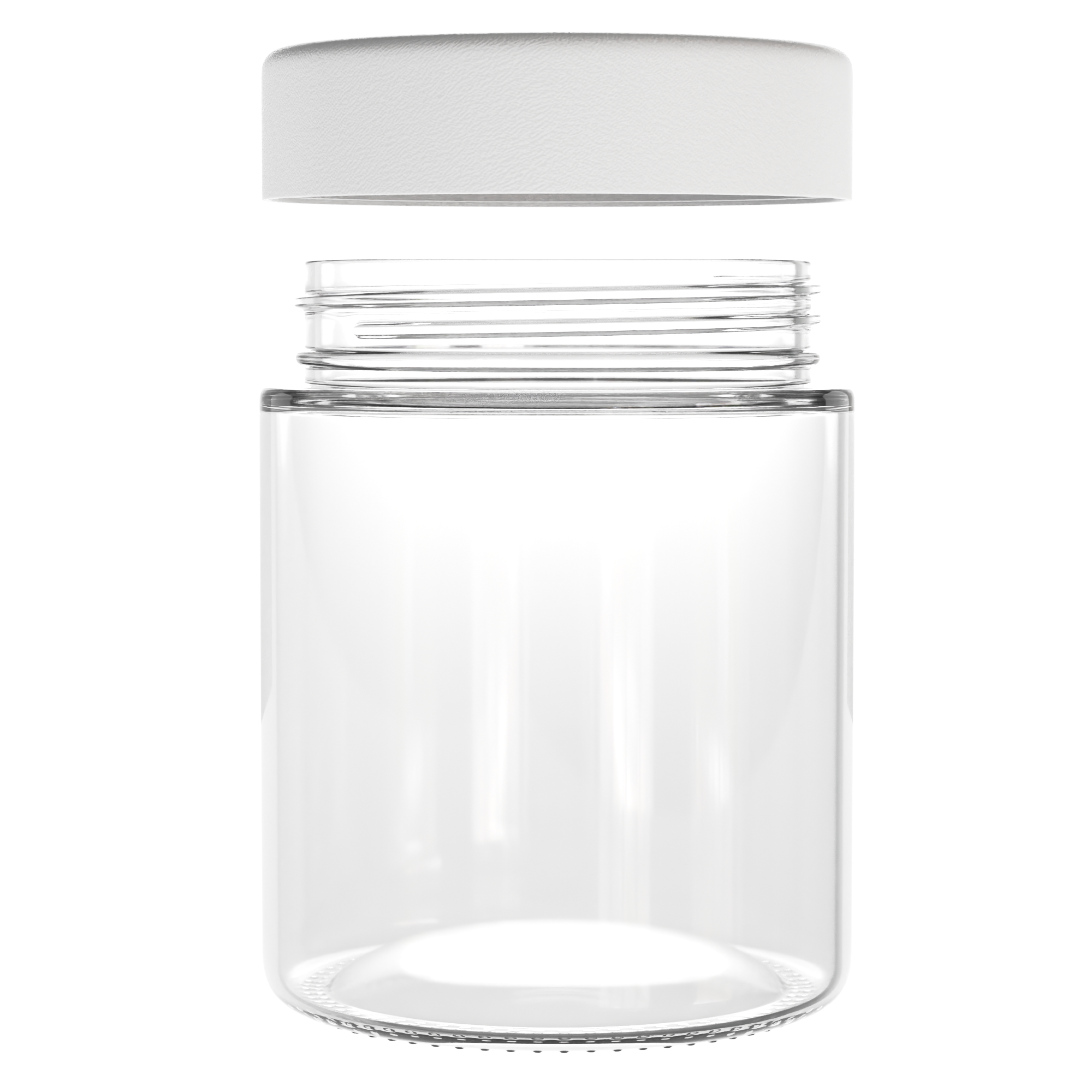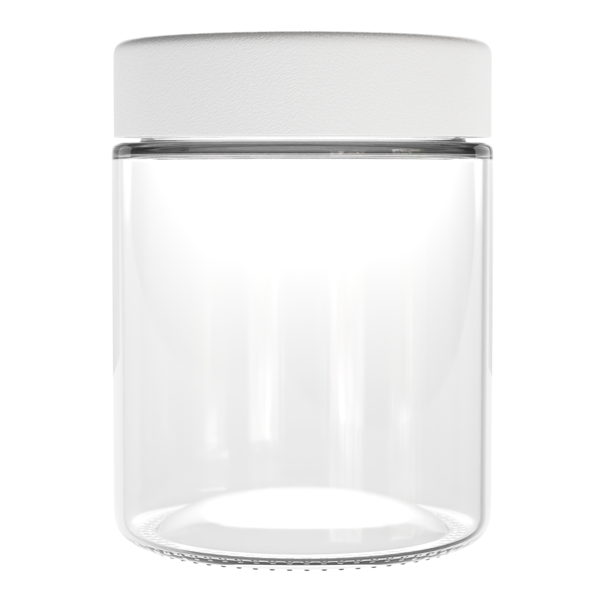 This round, clear, 18oz, child-resistant, glass jar base